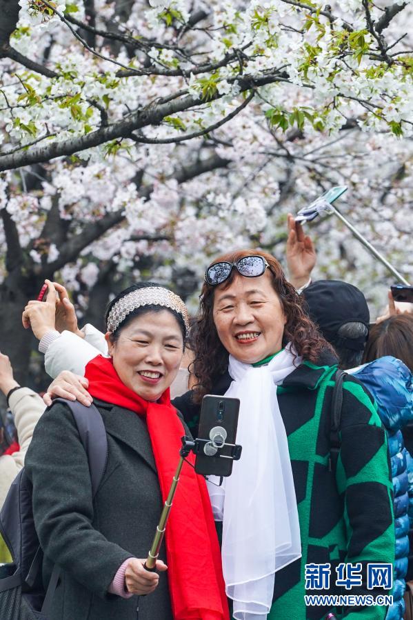 近日,南京街頭盛開(kāi)的櫻花燦若云霞,吸引眾多市民游客外出賞花游玩,享受春日美景。