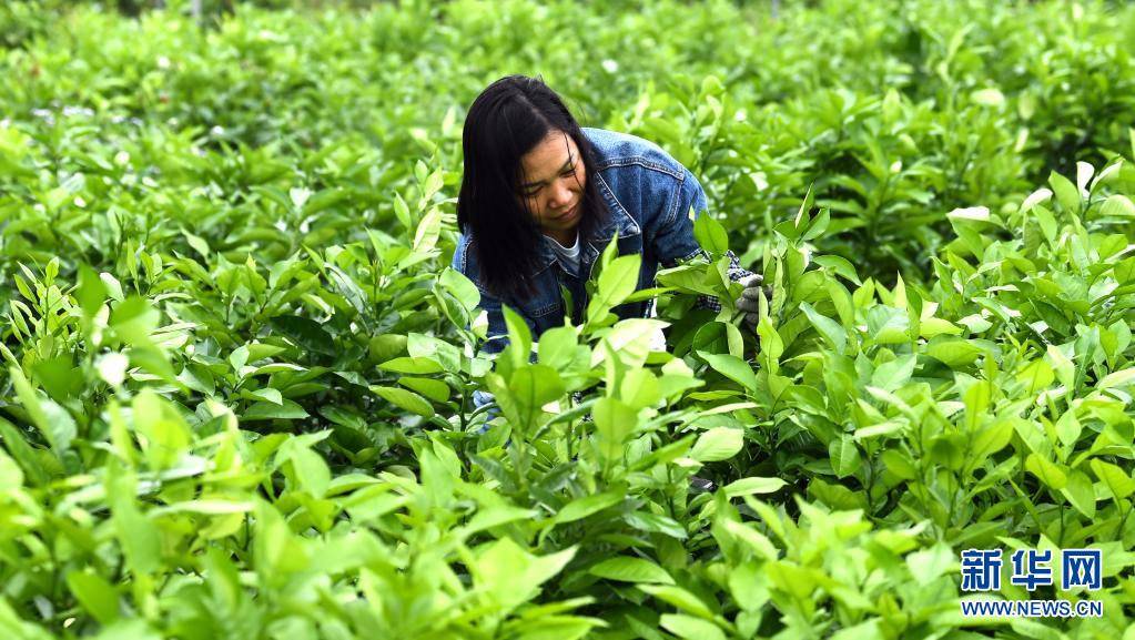 4月5日,廣西欽州市久隆鎮(zhèn)青草村村民在田間護理果苗。