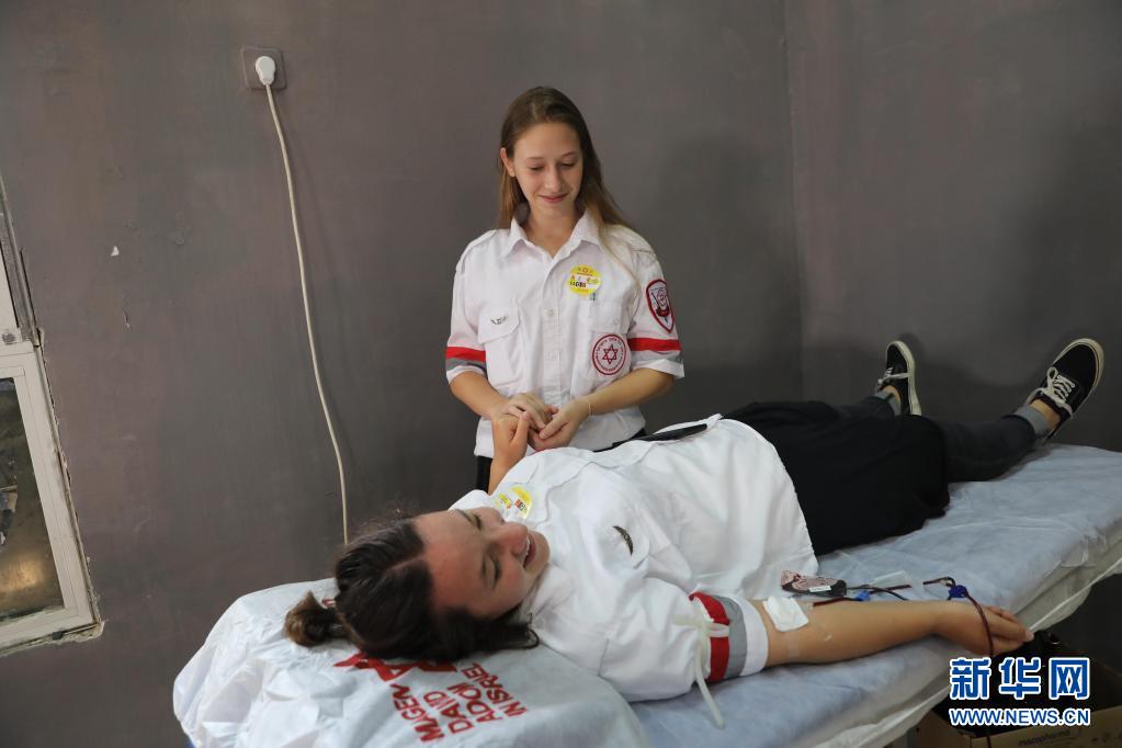6月14日,志愿者在以色列中部城市莫迪因獻(xiàn)血。