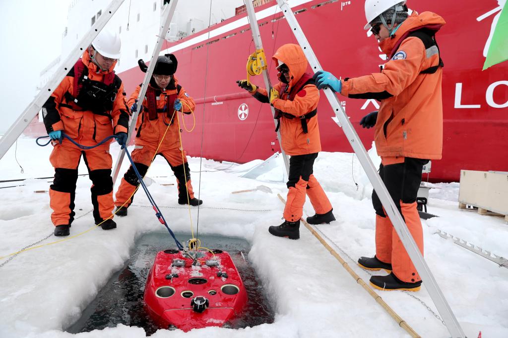 “双模AUV是具备水下巡游与冰底爬行两种运动模式的水下机器人,本次考察期间共完成12次下潜,顺利完成多项指标测试验证,同步开展了冰下海洋环境观测,获得了包括电导率、温度、盐度、溶解氧、叶绿素及冰底视频在内的水文—生态数据。”科考队员、中国科学院沈阳自动化研究所研究员王健说。
