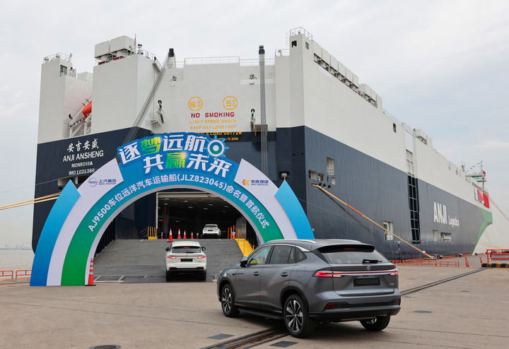 上海外高桥的海通国际汽车码头上,作业繁忙。每天平均有近4000辆中国制造汽车从这里启程,驶向全球市场。