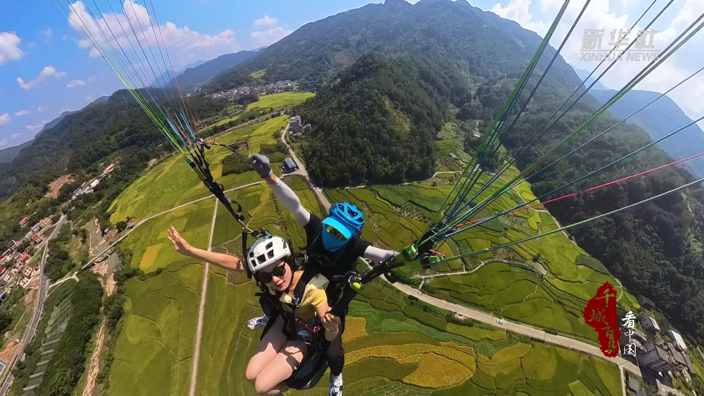 连日来,福建省龙岩市永定土楼大溪滑翔伞基地迎来客流高峰,来自全国各地的游客齐聚于此,在蓝天白云间体验滑翔伞的魅力。御风飞行时,游客们既能享受飞翔带来的刺激和快感,又能以独特视角欣赏圆形的土楼群、金黄的稻浪与蜿蜒的溪流构成的绝美风光。