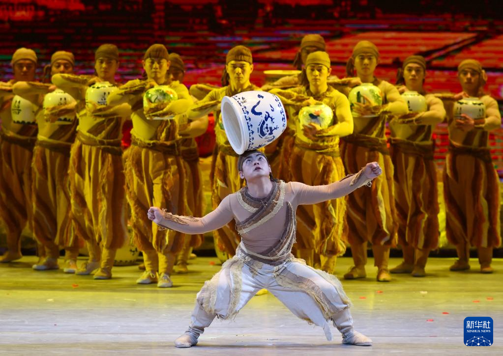 3月28日,在位于山东省济南市的山东省会大剧院,演员表演杂技节目《坛韵》。
