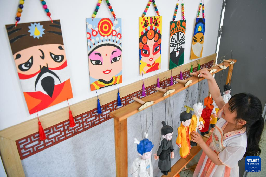 近年来,江苏省苏州市吴江区七都幼儿园积极推进非遗文化进校园活动,将当地非遗项目七都提线木偶引入校园,创设“木偶昆曲馆”,并定期邀请非遗传承人进园表演、指导木偶制作、传授演绎技法等,让小朋友们近距离接触七都提线木偶,感受非遗文化魅力。