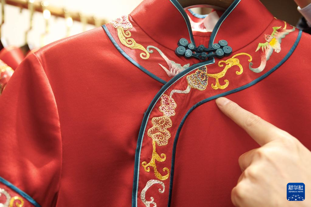 这是5月30日在上海市“龙凤旗袍”门店拍摄的旗袍。