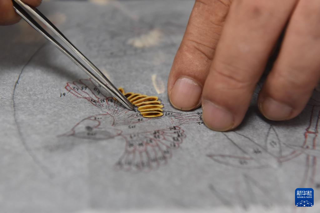 7月12日,吴永龙将拼好的一朵“花”放在底版上比对。