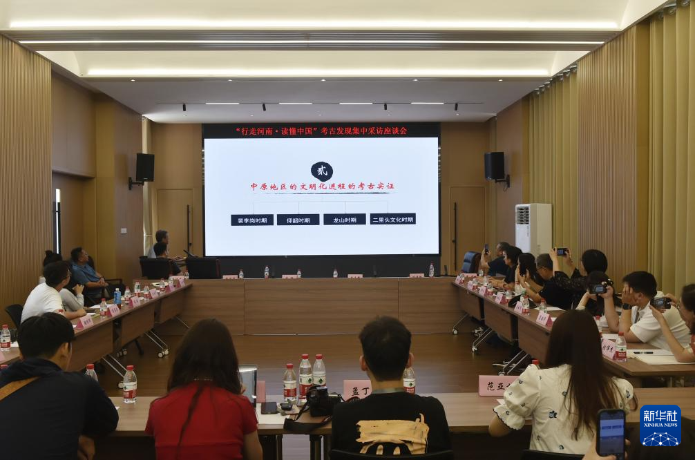 这是在河南省文物考古研究院举行的“行走河南·读懂中国”考古发现集中采访座谈会现场(8月7日摄)。
