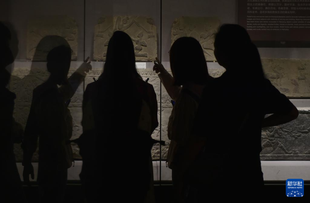 8月7日,参加集体采访活动的媒体记者在位于郑州市的河南博物院参观采访。