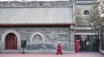 1月18日拍摄的宏恩观山门殿与观外的北京钟楼。