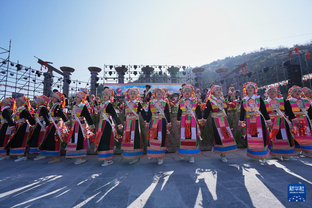 2月20日,盈江县苏典乡傈僳族群众身着节日盛装起舞。