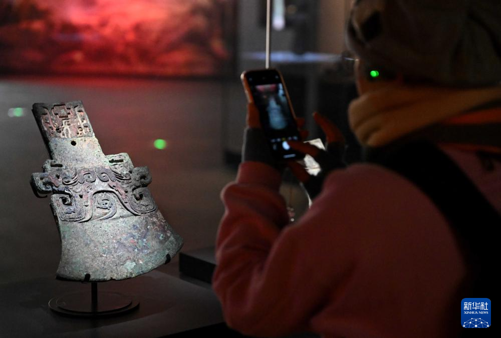 2月26日,参观者在河南安阳殷墟博物馆新馆内拍摄展品。