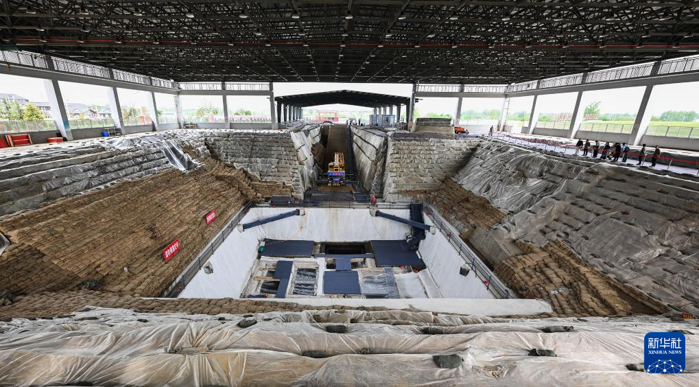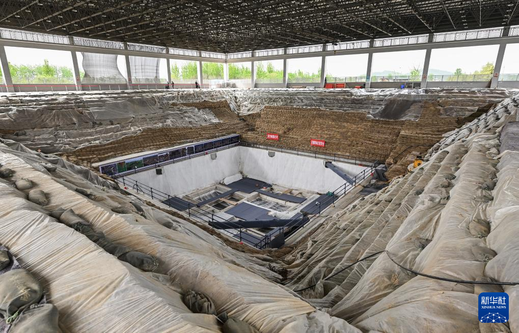 4月16日拍摄的武王墩一号大墓发掘现场。