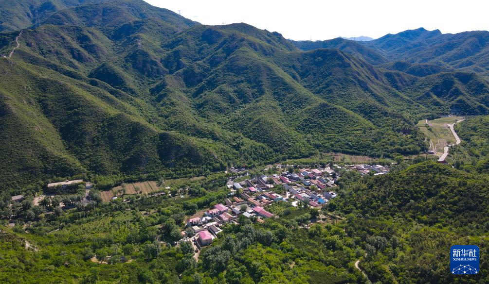 石峡关长城和长城脚下的石峡村(6月1日摄,无人机照片)。