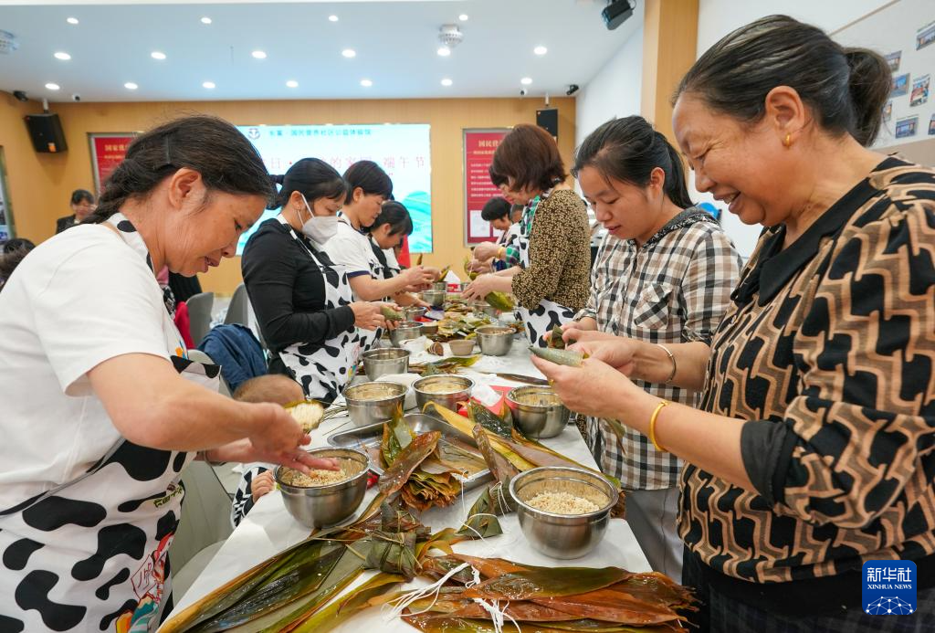 6月6日,人们在重庆市北碚区水土街道和悦家园社区包粽子迎端午。