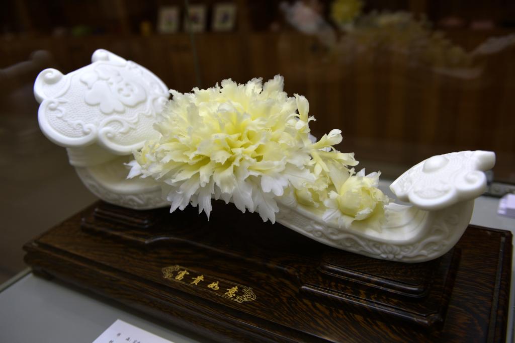 7月3日,工作人员(左)在向参观者讲解一组马可·波罗相关文献资料的展品。