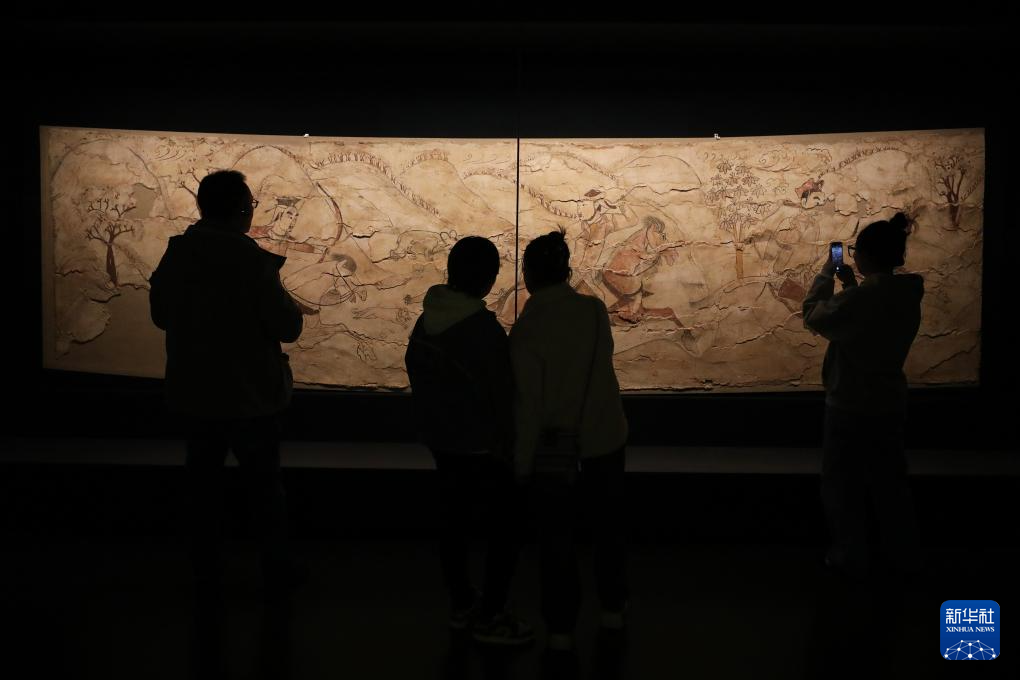 10月29日,观众在太原北齐壁画博物馆体验互动项目。