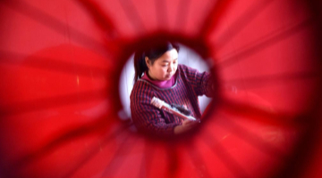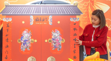 1月16日,市民在河北省群众艺术馆参观迎新春民俗文化展。
