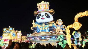 1月16日,小朋友在河北省群众艺术馆迎新春民俗文化展活动中悬挂灯笼。