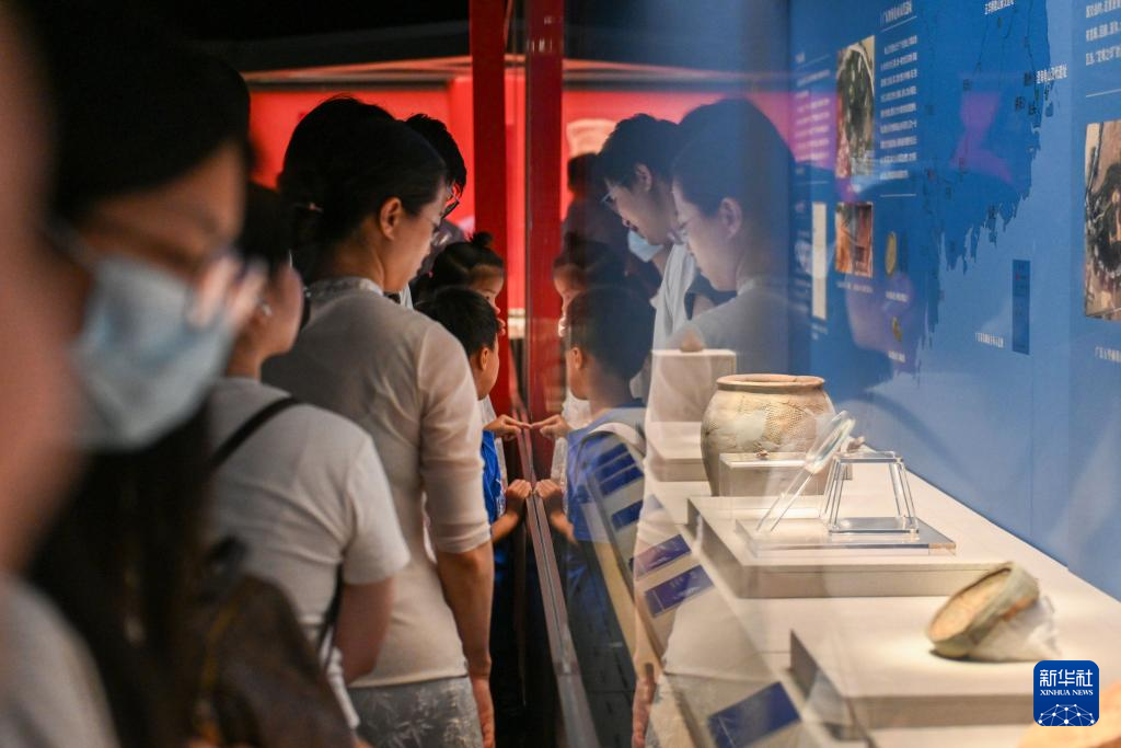 5月18日,参观者在广州南越王博物院(王墓展区)参观。