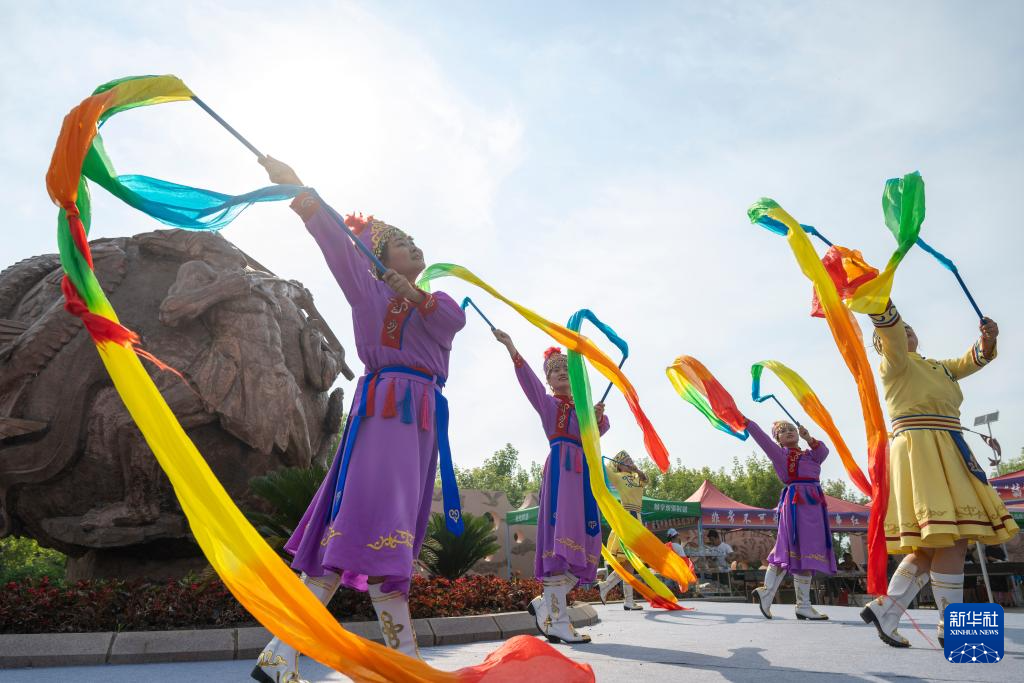 7月1日,演员在乌日贡主题活动现场表演赫哲族传统舞蹈。