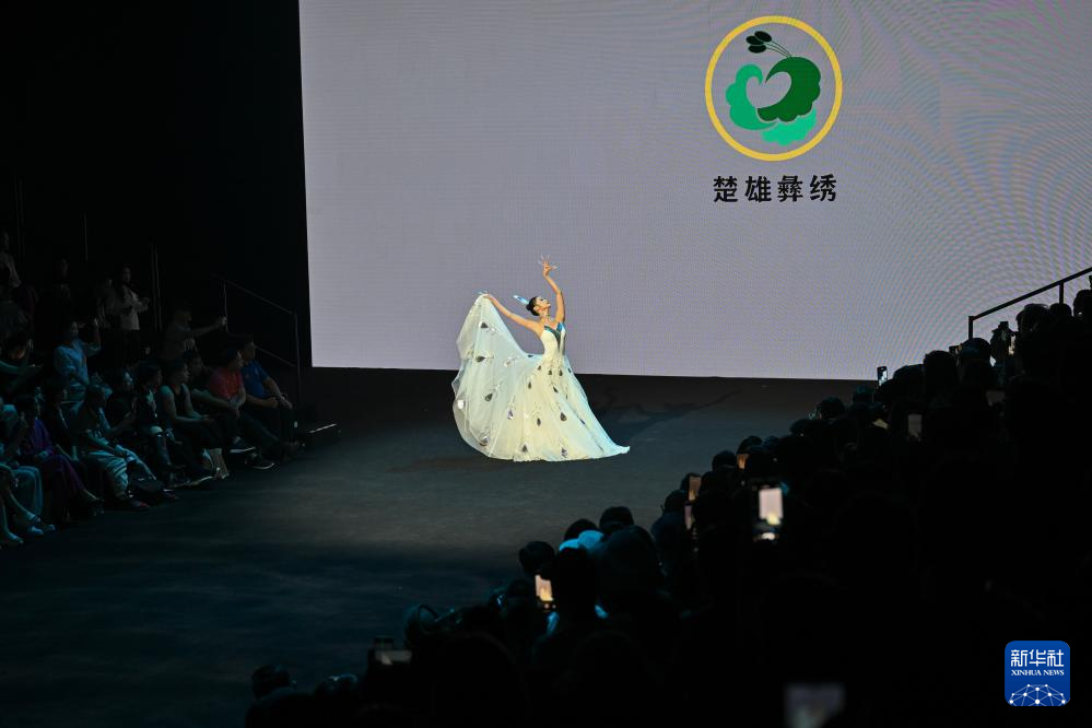 9月8日,演员在中国国际时装周·楚雄时装周彝绣非遗创新专场上表演孔雀舞。
