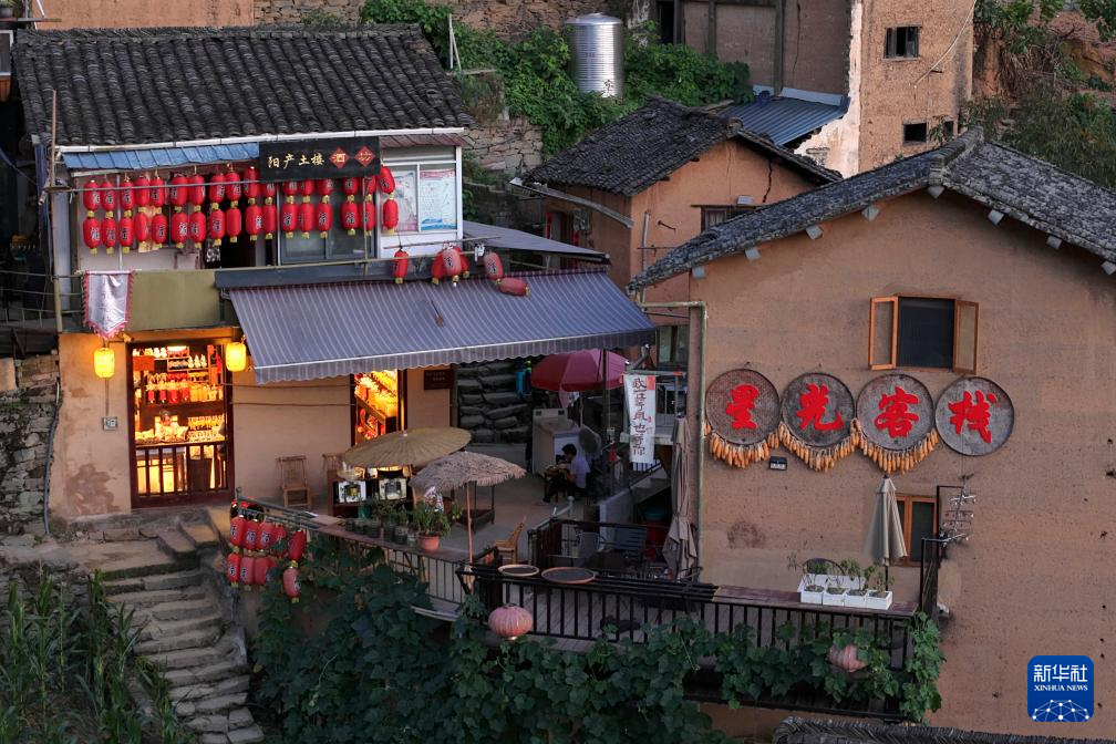 阳产村山多地少,以种植山核桃、板栗、茶叶等为主。过去,村庄无人问津,村民多外出打工,成了“空心村”。近年来,当地政府依托土楼和“晒秋”特色,大力发展乡村旅游业。村民们当向导、开民宿、办起农家乐,吃上了旅游饭。