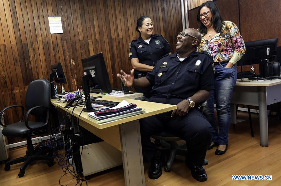 Marco Antonio Sales, a police officer aged 53, who is also a member of the samba school "Tom Maior", interacts with his coworkers in Sao Paulo's Legislative Assembly, in Sao Paulo, Brazil, Feb. 2, 2018. To become "King Momo", one is necessarily weighing at least 110kg. Sales, who is 1.91 meters in height and 165.5 kg in weight, has been participating in Sao Paulo's samba schools since he was 12 years old. With other members representing the Sao Paulo's Carnival Court, he will participate in the opening ceremony of the first night parade on Feb. 9 in the Anhembi Sambadrome.(Xinhua/Rahel Patrasso)