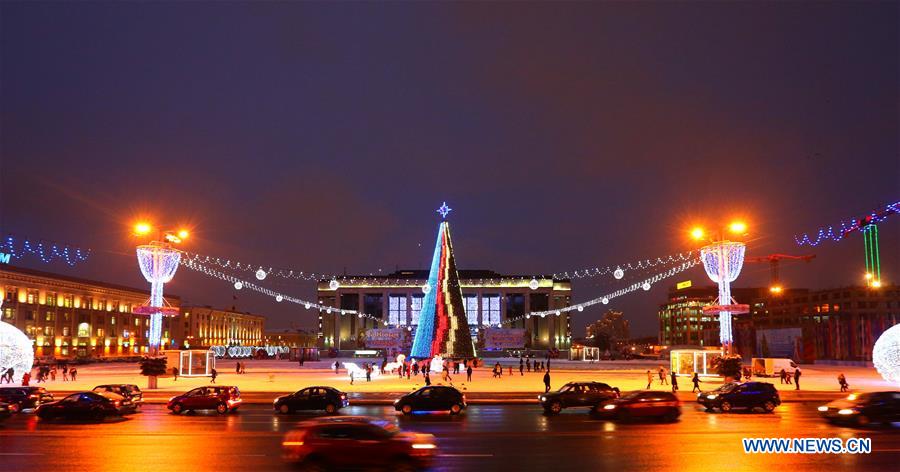 Photo taken on Dec. 18, 2018 shows the light decorations at a square in downtown Minsk, Belarus. (Xinhua)
