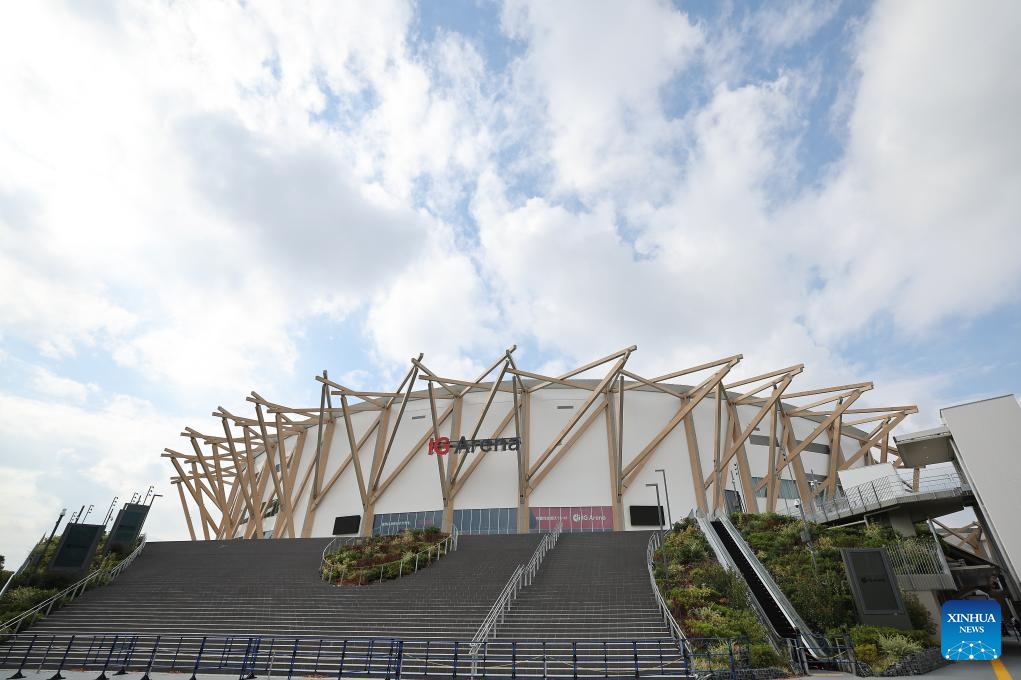 Photo taken on Oct. 10, 2025 shows the general view of Aichi International Arena, which will host basketball and Judo events during the 20th Asian Games Aichi-Nagoya 2026, in Nagoya, Japan. (Xinhua/Cao Can)