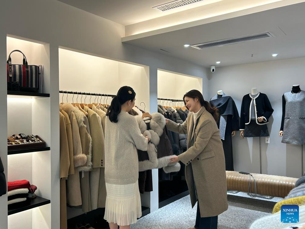TIANJIN, Jan. 9 (Xinhua) -- In the bustling Wanglanzhuang Wenzhou International Trade City in north China's Tianjin, customers flocked to shop for New Year outfits. Among the shops, a fashion boutique stood out with its chic displays and vibrant colors.