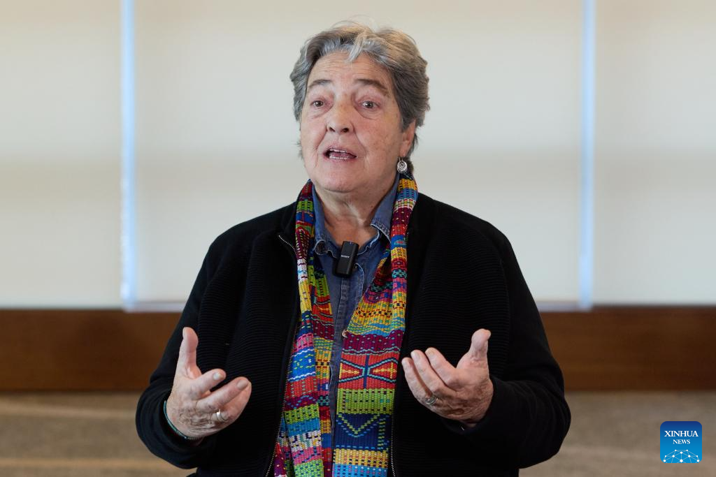 Uruguayan teacher and journalist Lucy Garrido receives an interview with Xinhua in Montevideo, Uruguay, Sept. 25, 2025. (Xinhua/Meng Dingbo)