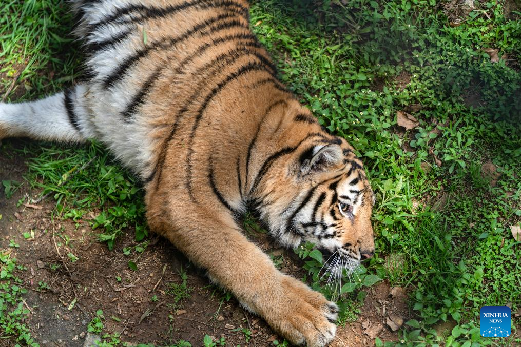 An eleven-month-old Bengal tiger cub is seen at the Johannesburg Zoo in Johannesburg, South Africa, on Jan. 9, 2026. Two Bengal tiger cubs were rescued from illegal trade. They made their public debut on Jan. 8. (Photo by Shiraaz Mohamed/Xinhua)