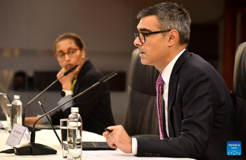 Evan Papageorgiou, mission chief of the International Monetary Fund (IMF) for Sri Lanka, attends a press conference in Colombo, Sri Lanka, on Oct. 9, 2025. The International Monetary Fund (IMF) and Sri Lankan authorities have reached staff-level agreement on economic policies to conclude the fifth review of Sri Lanka's reform program supported by the IMF's Extended Fund Facility, the IMF said on Thursday. (Photo by Gayan Sameera/Xinhua)
