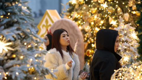 People visit Ala-Too Square during New Year event in Bishkek, Kyrgyzstan
