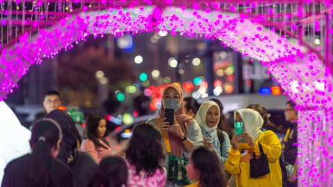 People visit Jakarta Light Festival in Indonesia