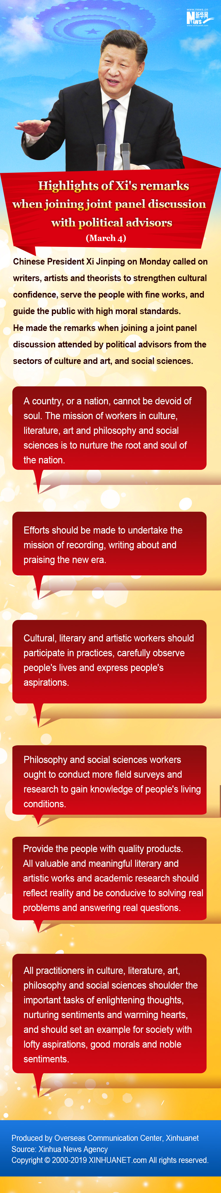 Infographic: Highlights of Xi's remarks when joining joint panel discussion with political advisors (March 4)