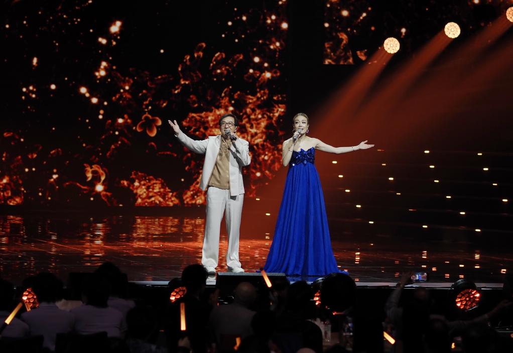 9月28日,成龙(左)和容祖儿在晚会上演出。新华社发(王申摄)