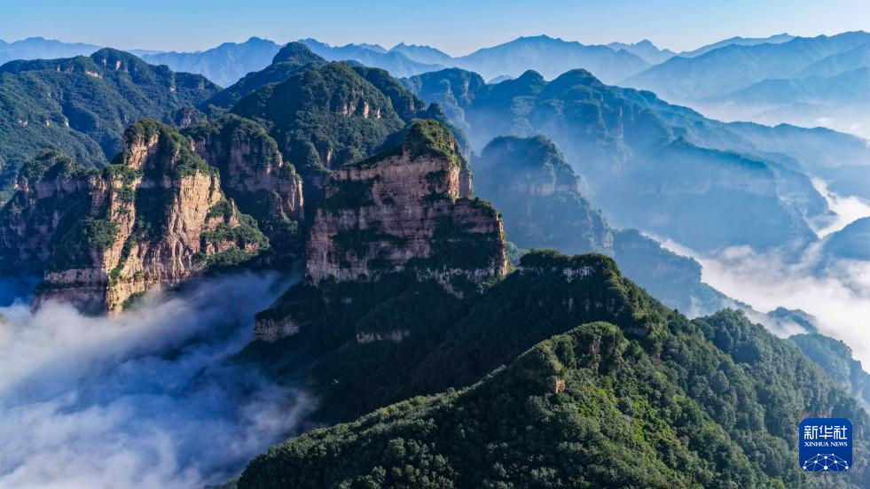 9月14日在河北省承德市兴隆县兴隆山景区拍摄的云海景观(无人机照片)。