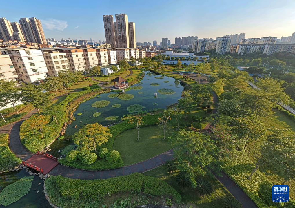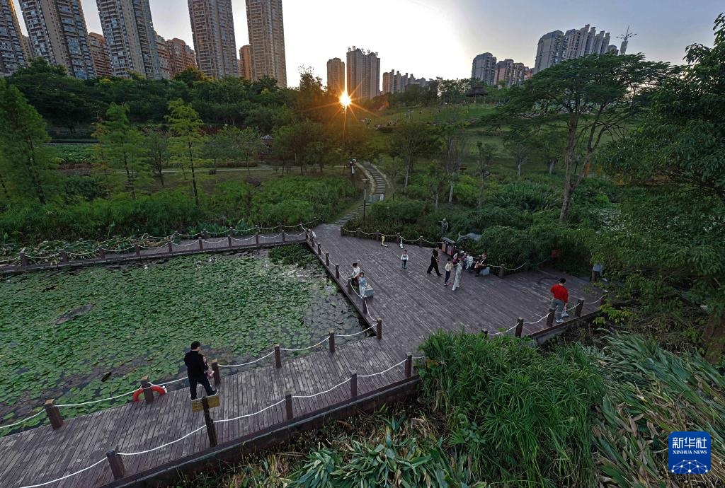 市民在广西南宁市那考河湿地公园游玩(11月14日摄,无人机照片)。