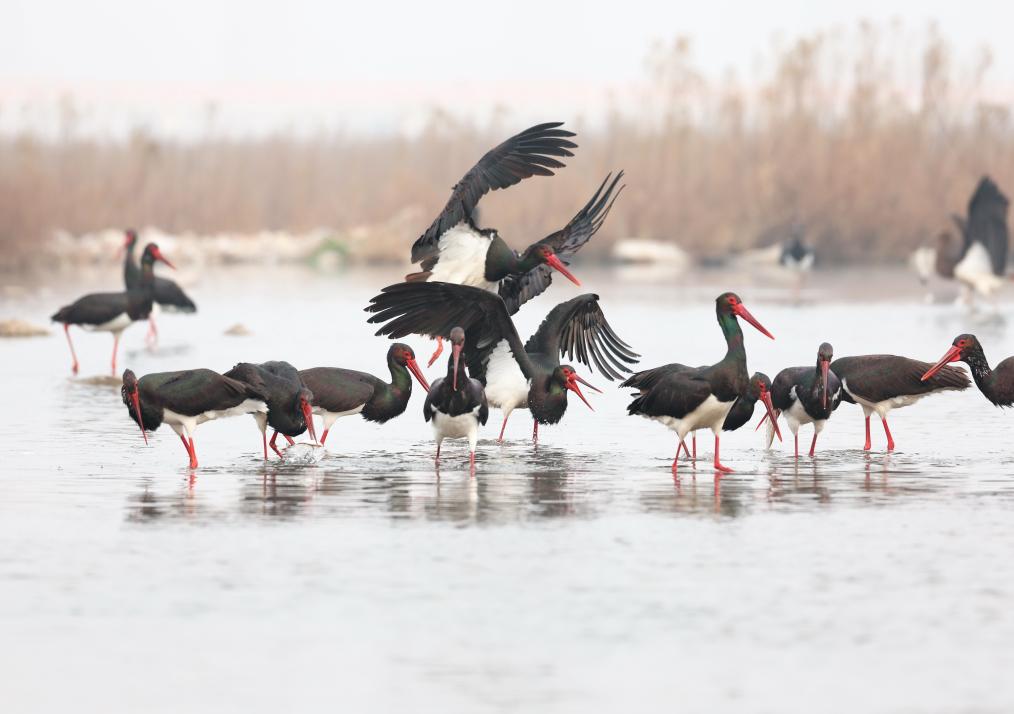 波光鏡影顯生趣 水鳥(niǎo)翔集繪冬日美景