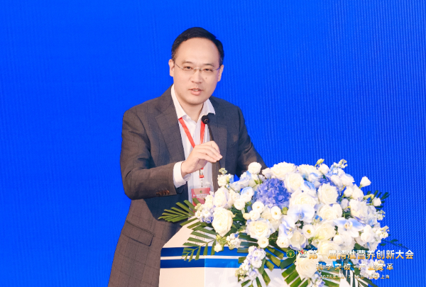 8月18日,中国营养学会精准营养产业分会主任委员、蒙牛集团副总裁张旭光做主旨报告。主办方供图