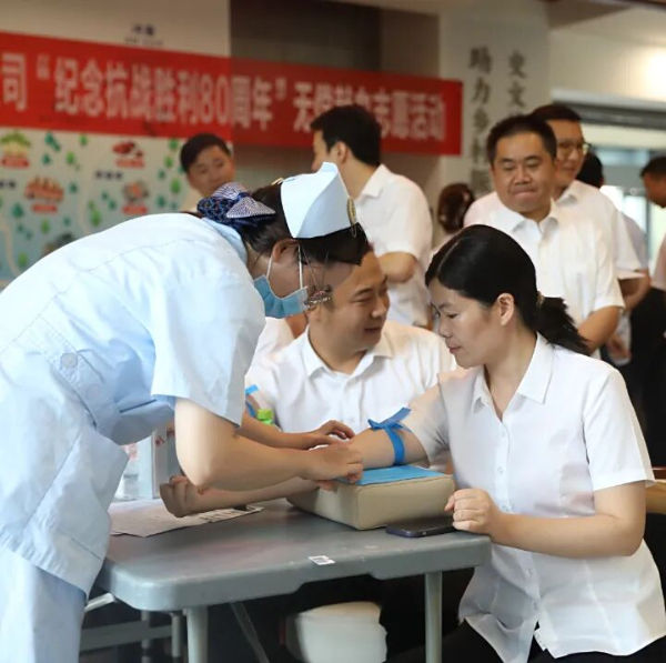 当日上午10时,无偿献血活动在有序组织下正式启动。采血现场,医护人员全程专业引导,员工们依次完成信息登记、健康征询、血液检测及采集等流程。从党员干部到青年职工,大家纷纷挽起衣袖,以饱满的热情参与其中。
