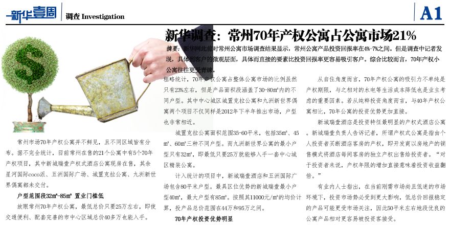新華調(diào)查:常州70年產(chǎn)權(quán)公寓占公寓市場(chǎng)21%