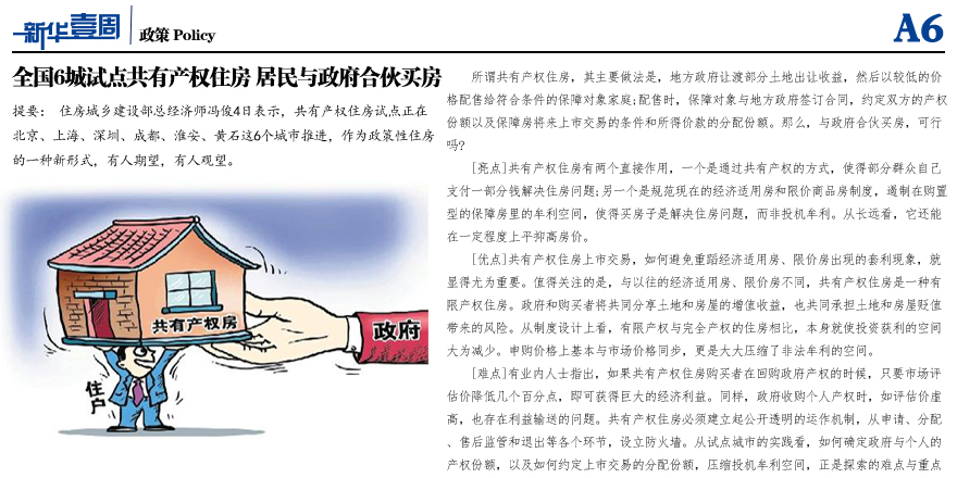 全國(guó)6城試點(diǎn)共有產(chǎn)權(quán)住房