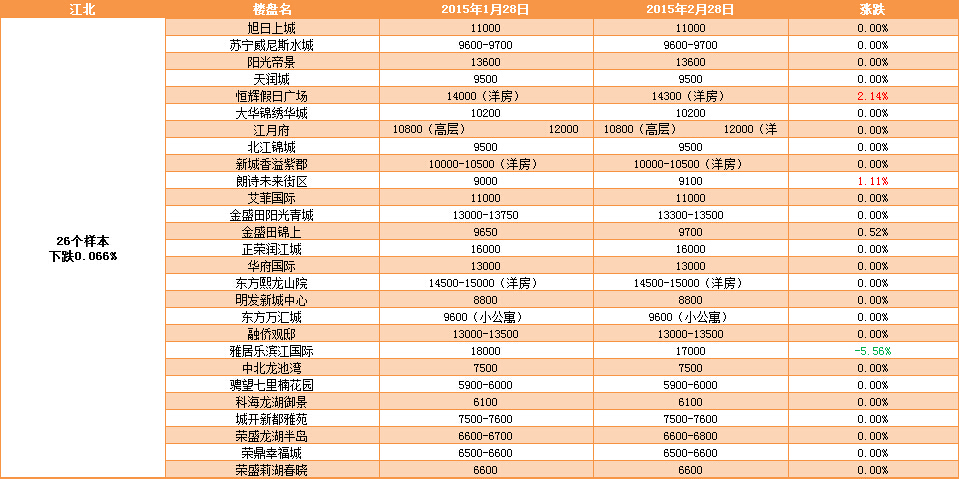 國家統(tǒng)計(jì)局發(fā)布《2015年1月份70個(gè)大中城市住宅銷售價(jià)格變動(dòng)情況》。發(fā)布的數(shù)據(jù)顯示,1月份70個(gè)大中城市新建商品住宅價(jià)格環(huán)比下降的城市有64個(gè),比上月減少2個(gè);持平和上漲的城市分別有4個(gè)和2個(gè),均比上月增加1個(gè)。其中,南京新建住宅價(jià)格環(huán)比持平?!?/span>…[詳細(xì)]