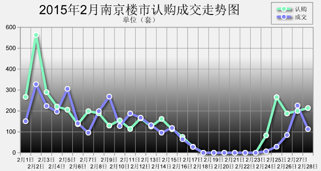 截止到2月28日,南京網(wǎng)上房地產(chǎn)數(shù)據(jù)顯示,2月南京樓市新房認(rèn)購4094套、成交3295套,日均賣房146套。環(huán)比上月(備注:2015年1月南京樓市商品住宅認(rèn)購6937套、成交6349套,日均賣房132套)認(rèn)購量下跌4成,成交量下跌近5成。 與去年相比(備注:2014年2月南京樓市商品住宅認(rèn)購3574套,成交3459套,日均賣房127套)。認(rèn)購量上漲15%,成交量下跌4.7%。 …[詳細(xì)]