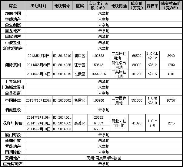 百?gòu)?qiáng)房企在寧土地儲(chǔ)備調(diào)查”近日對(duì)第81-100名的全國(guó)百?gòu)?qiáng)房企展開統(tǒng)計(jì),結(jié)果發(fā)現(xiàn),僅上海建工房產(chǎn)、深業(yè)集團(tuán)、大華集團(tuán)3家房企在南京有土地儲(chǔ)備或在售項(xiàng)目。其中,上海建工房產(chǎn)、深業(yè)集團(tuán)還是借助股權(quán)收購(gòu)、協(xié)議轉(zhuǎn)讓在二級(jí)土地市場(chǎng)尋得土地,最終曲線入寧。