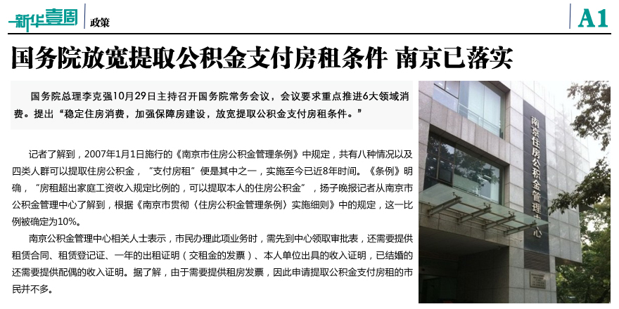 南京公積金付房租已落實