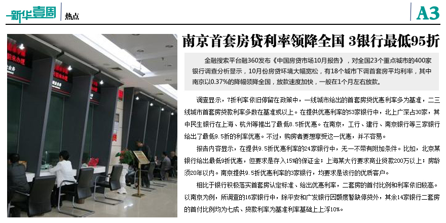 南京首套房貸利率領降全國