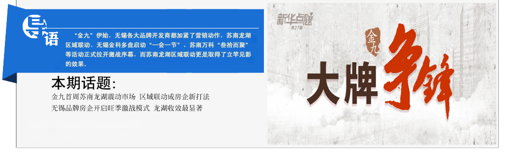 “金九”伊始,無錫各大品牌開發(fā)商都加緊了營(yíng)銷動(dòng)作,蘇南龍湖區(qū)域聯(lián)動(dòng)、無錫金科多盤啟動(dòng)“一會(huì)一節(jié)”、蘇南萬科“叁拾而聚”等活動(dòng)正式拉開激戰(zhàn)序幕,而蘇南龍湖區(qū)域聯(lián)動(dòng)更是取得了立竿見影的效果。